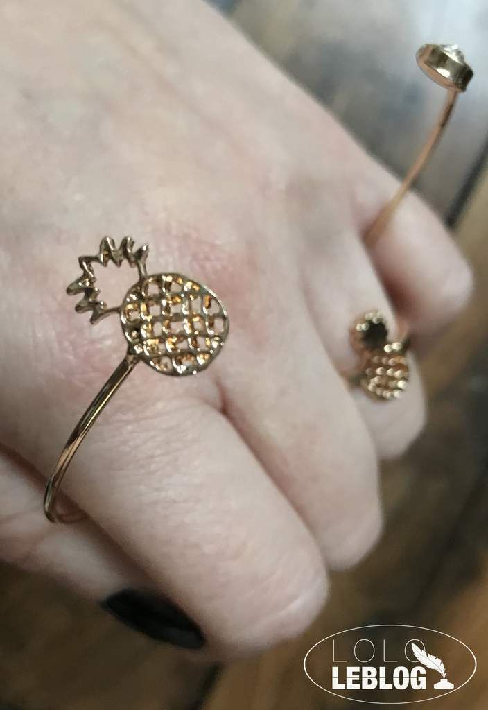 Mes petites boucles d'oreilles ( chaussons de danse ) et mon ensemble bracelet et bague ( ananas ) sont super mignons et tendances, tels que je les imaginais.