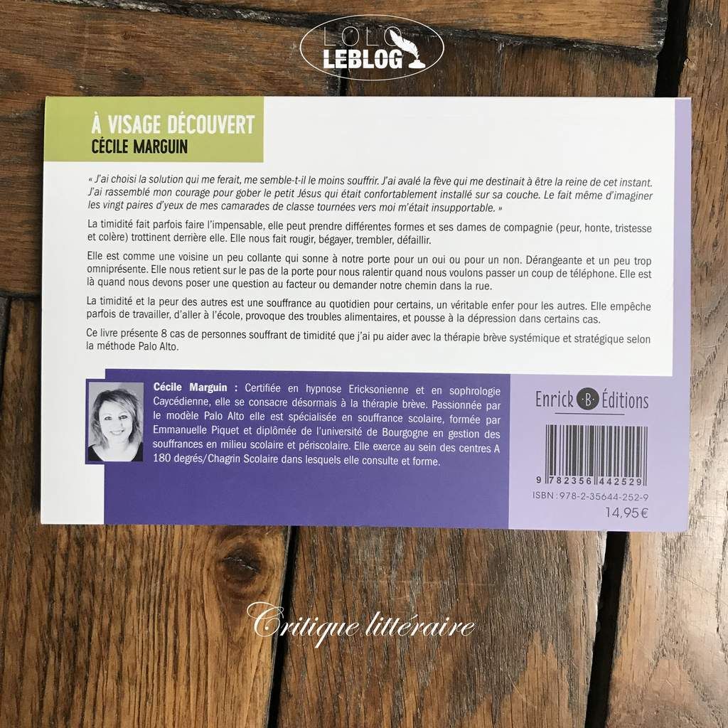 Souffrance au quotidien pour certains, véritable enfer pour les autres, la timidité est un obstacle dans la vie de tous les jours. Dans "A visage découvert", Cécile Marguin, thérapeute certifiée en hypnose Ericksonienne et en sophrologie Caycédienne, diplômée de l’Université de Bourgogne en gestion des souffrances en milieu scolaire, témoigne, au travers de 8 cas concrets, des résultats obtenus avec la thérapie brève systémique et stratégique selon la méthode Palo Alto.